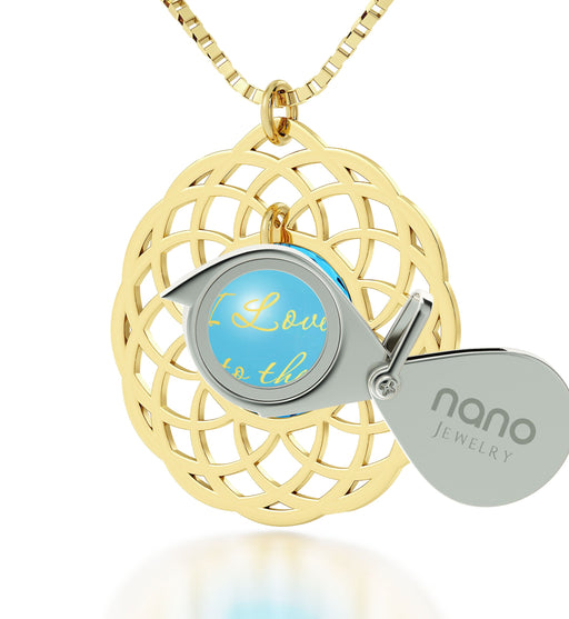 Gold Plated Silver I Love You To The Moon and Back Necklace Mandala Pendant 24k Gold Inscribed