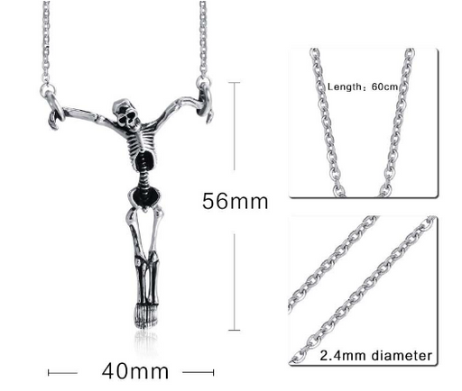 Bargain StoreIn stockDare to stand out with this unique Crucifixion Skull Pendant Necklace. Not for the faint hearted, this half body skeleton hanging pendant necklace ...