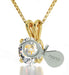 14k Yellow Gold Aries Necklace Zodiac Pendant 24k Gold inscribed on Crystal