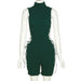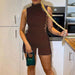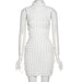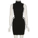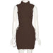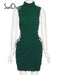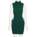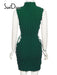 High Neck Solid Sleeve Lace Up Mini Dress