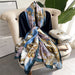 Luxury Silk Scarf This stunning luxury silk scarf is the perfect accessory for any woman. The beautiful print and colours make it perfect for summer, while the silk feeling fabric makes it soft and comfortable to wear. The Scarf is also large enough to be worn as a shawl or hijab, making it a versatile piece that can be worn in many different ways.