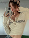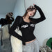 Retro Graffiti Print Elastic Long Sleeve T-Shirt