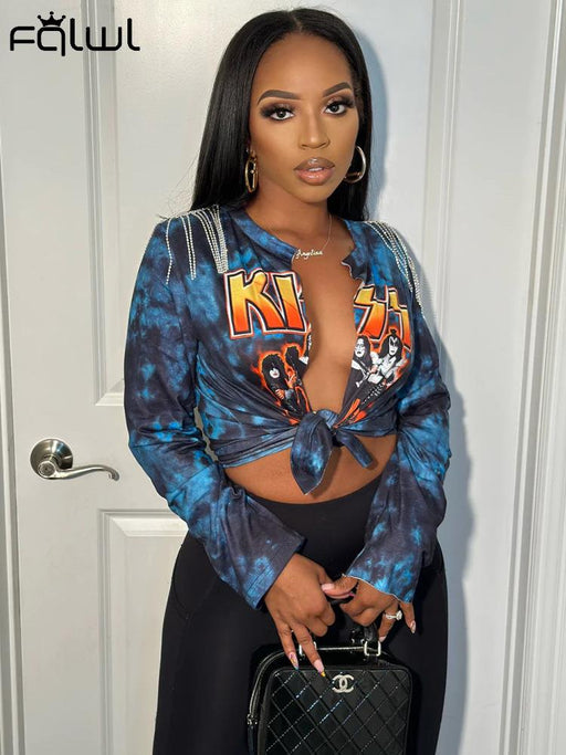 Bandage Print Blue Long Sleeve Tees