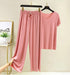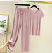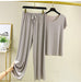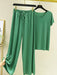 Introducing our Ice Silk Summer Set, the perfect two piece set for those hot summer days! Made from 100% ice silk, this set is lightweight and breathable, keeping you cool and comfortable all day long. The T-shirt features a V-neckline and short sleeves, while the pants have a wide leg silhouette for a relaxed look. This set is available in four fresh and trendy colors, so you're sure to find the perfect one for you. Plus, it comes in sizes S-XL, so everyone can enjoy summers in style!