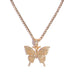 This exquisite butterfly pendant necklace is the perfect addition to any outfit. Made with gleaming gold and silver, it features a beautiful butterfly design with sparkling crystals. The delicate chain is the perfect length to accentuate your neckline. Dress up or down, this versatile necklace is a must-have for your jewelry collection. Whether you're wearing it for a special occasion or everyday glam, it's sure to add a touch of luxury.
